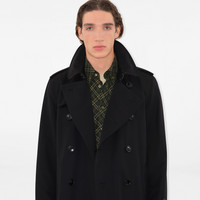 Product Details The iconic Burberry trench coat, made in England from shower-resistant cotton gabardine. Inside is Burberry Check cotton, used to line our coats since the 1920s. Part of the Heritage Collection, the Kensington is cut to a regular fit with set-in sleeves. - Double-breasted button closure - Hook-and-eye collar closure - Throat latch - Epaulettes - Belt - Side button welt pockets - Belted cuffs - Back button vent - Burberry Check lining and undercollar - Regular fit. Fits true to size, take your normal size. - Made Yorkshire, England - Item 80793891 Size & Fit - Length: 91cm/35.8in (size IT 54) - Model’s height: 185cm/6ft 1in. Model wears size IT 54 Fabric & Care - Outer: 100% cotton - Lining: 100% cotton - Sleeve lining: 100% viscose - Buckles: 100% calf leather - Specialist dry clean