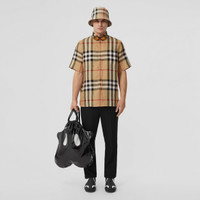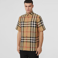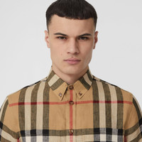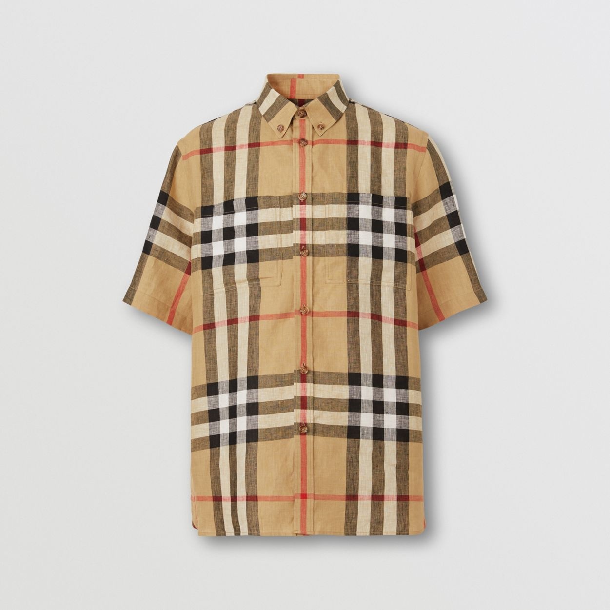 PRODUCT DETAILS A short-sleeved shirt in Italian-woven linen, animated with signature check. The oversized silhouette features a neat button-down collar and chest pockets. This style fits large to size. For a regular fit, please take a size smaller than normal. Shirt length: 80cm/31.5in. This is based on a size UK M as proportions change slightly according to size. Model’s height: 191cm/6ft 3in. Model wears size UK M. 100% linen Button-down collar Chest patch pockets Curved hem Machine wash Imported 80510731