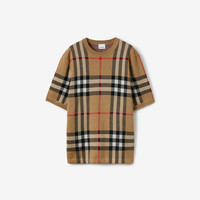Short-sleeve Check Silk Wool Jacquard Top