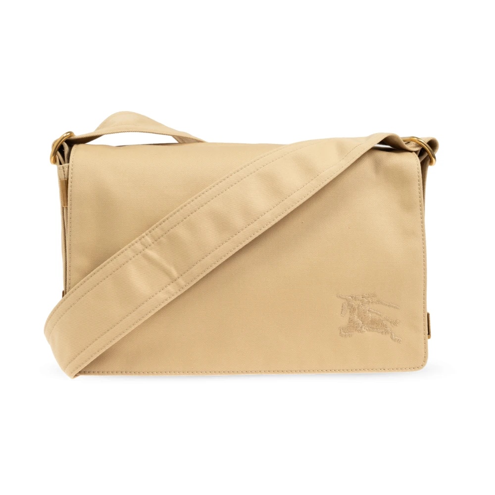 Introducing the TRENCH SHOULDER BAG from the renowned brand Burberry. This rectangular-shaped bag, made from high-quality beige material, embodies the essence of elegance and functionality. With a large flap closing the main compartment and a wide, adjustable shoulder strap, it is sure to meet the expectations of the most discerning fashion connoisseurs. Details such as the embroidered designer logo depicting a knight on horseback and the rectangular emblem with the brand name on the back of the bag highlight its exclusive character. The interior of the bag is meticulously finished, featuring a visible pocket and a patch with a blue printed logo. The Trench bag features three separate compartments, including two with magnetic closures, making it an extremely practical accessory. The spaciousness of the bag makes it perfect for everyday use, accommodating larger items. Its classic, elegant design pairs beautifully with both formal and casual outfits. WHY SHOULD YOU BUY THIS PRODUCT? * High-quality material and solid craftsmanship. * Unique details that emphasize exclusivity. * Practicality with spacious compartments and adjustable strap. * Elegant design suitable for any occasion. * Prestigious Burberry brand with a rich history. Height: 15cm Width: 26cm Model`s Measurements Height: 185cm Chest: 92cm Waist: 74cm Hips: 91cm Designer color: Beige Designer ID: 8094562 A3743-FLAX Material & Care 100% Fabric