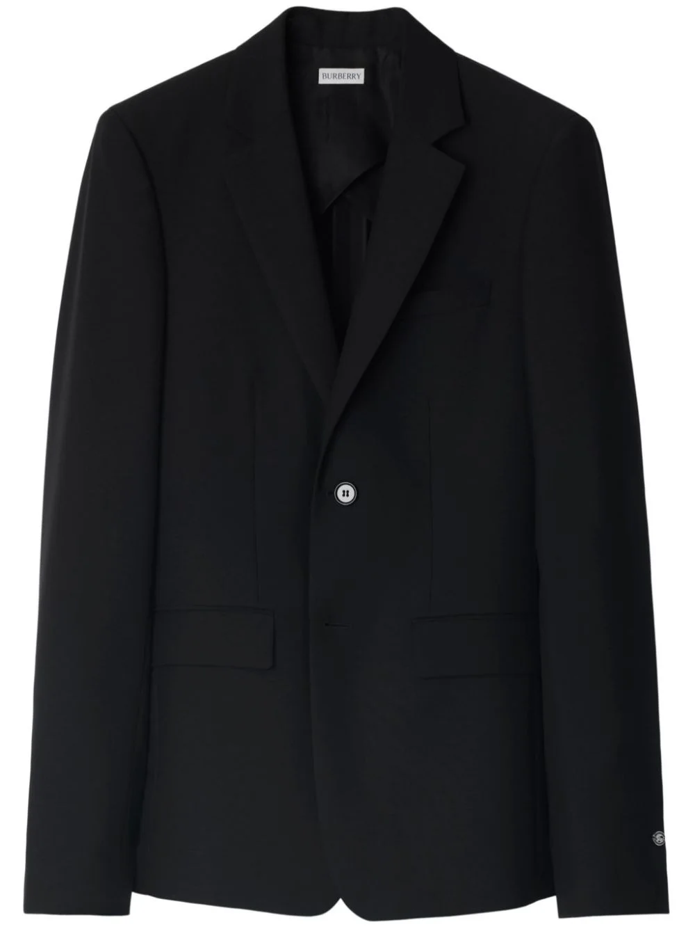 single-breasted blazer Highlights - Black - Wool blend - Front button fastening - Notched lapels - Shoulder pads - Long sleeves - Buttoned cuffs - Chest welt pocket - Two front flap pockets - Dart detailing - American rear vent - Partial lining Made in Italy Composition Lining: Cupro 100%, Viscose 100% Outer: Buffalo Horn 100%, Wool 72%, Mohair 28%