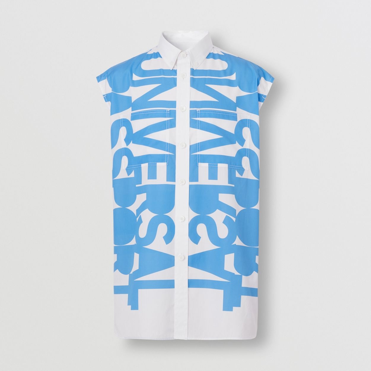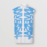 Sleeveless Slogan Print Cotton Poplin Shirt