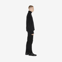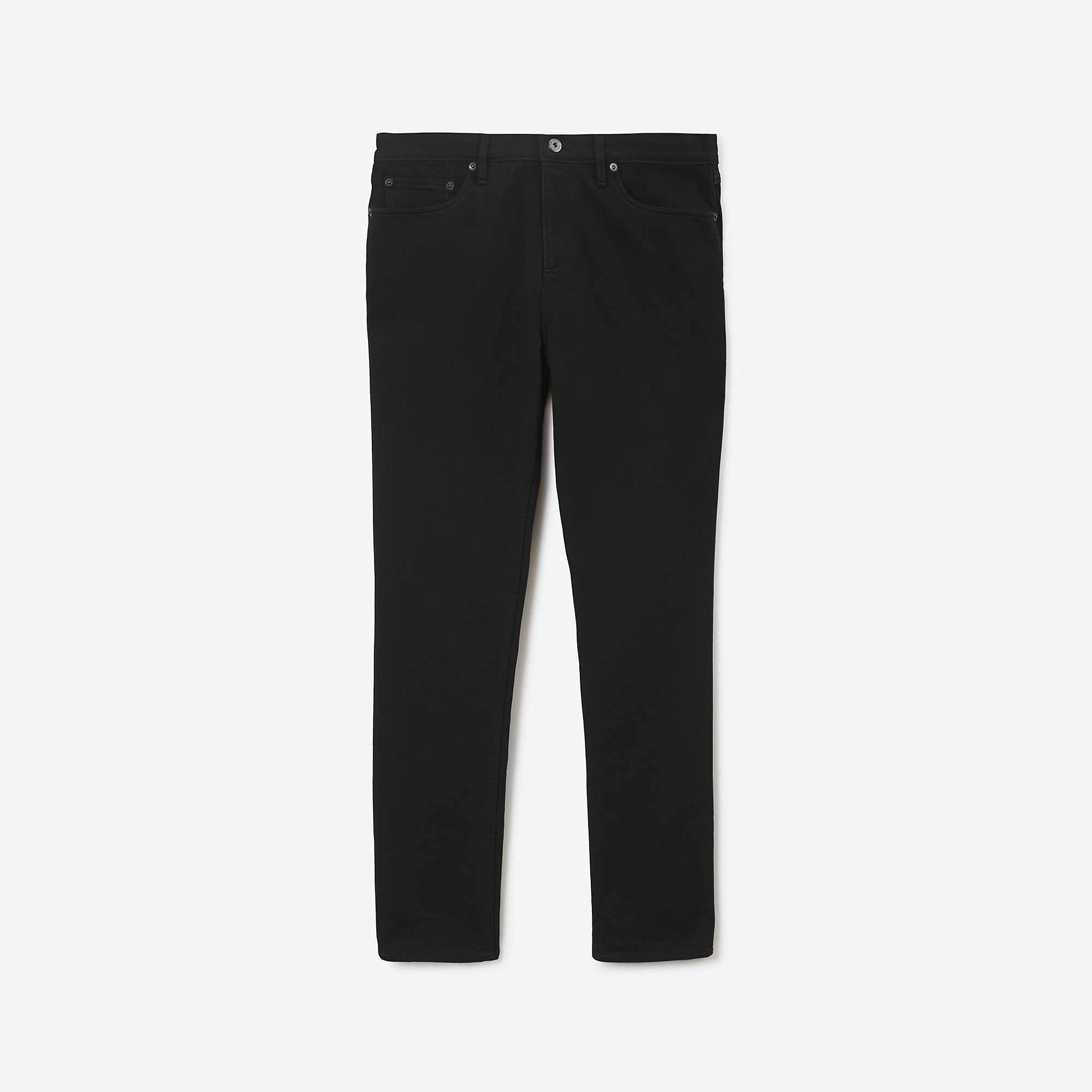 PRODUCT DETAILS Woven with a hint of stretch and detailed with a leather logo patch. - Inside leg length: 81.5cm/32.1in. This is based on a size UK 32. - Model’s height: 186cm/6ft 1in. Model wears size UK 32. 99% cotton, 1% elastane Trim: 100% calf leather Regular rise, slim fit Button and zip fly closure Leather patch with embossed Burberry lettering at back Specialist dry clean Made in Italy Item 80715491