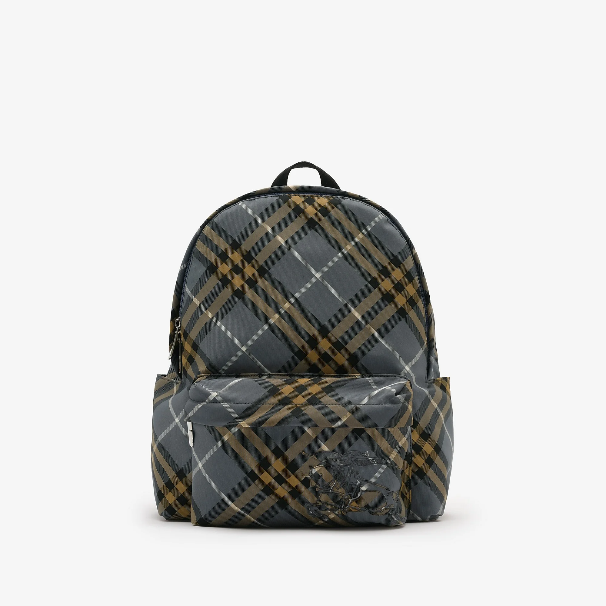 Product Details A compact backpack woven in the Burberry Check with a matching lining and Equestrian Knight Design applique. The design features B-cut zip pulls and side pockets that can fit a water bottle. - Webbing top handle - Adjustable shoulder straps - Two-way zip closure - Exterior zip pocket, two exterior side slip pockets - Appliqued Equestrian Knight Design at front pocket - Burberry Check lining - Comes with a dust bag - Item 81234521 Size & Fit - 29 x 11 x 34cm/11.4 x 4.3 x 13.4in Fabric & Care - 92% polyester, 8% polyurethane - Trim: 53% cotton, 47% polyester - Imported