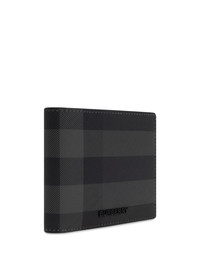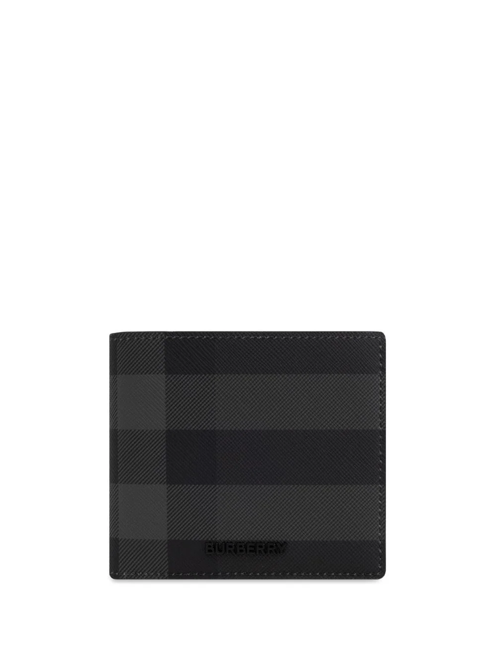 bi-fold card holder Highlights - Grey - Calf leather - Check pattern - Bi-fold design - Internal card slots - Debossed internal logo - Coin pocket Imported Composition Outer: Polyurethane 100% Lining: Calf Leather 100%