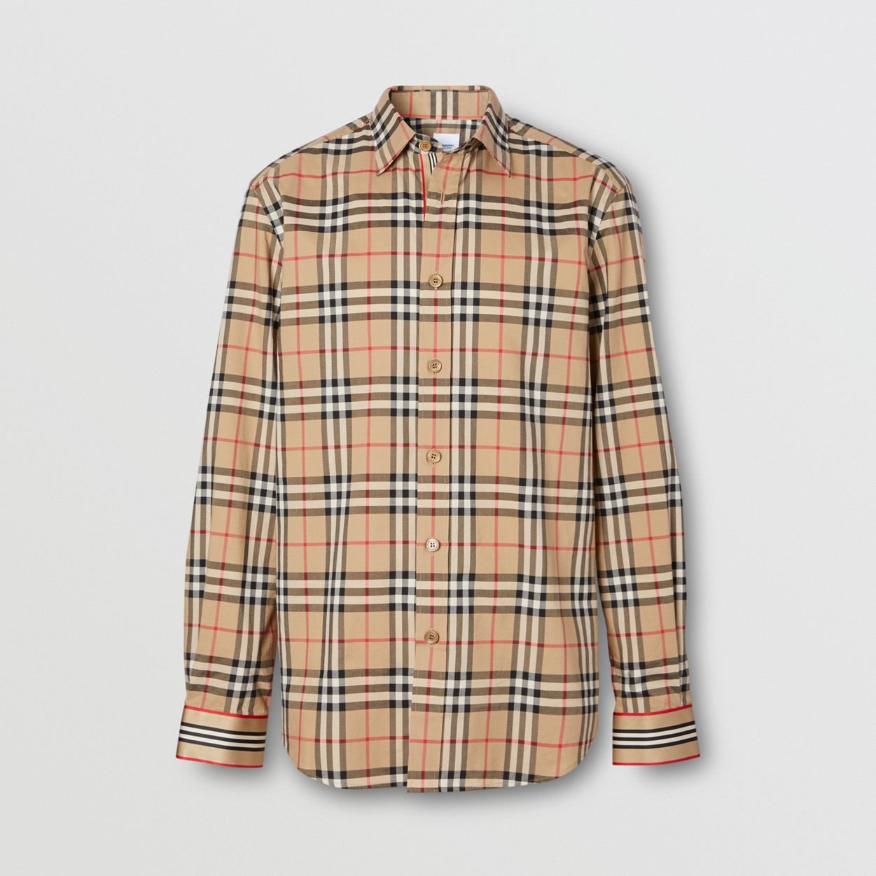 A classic-fit cotton shirt in our archival Vintage check, accented with Icon stripe cuffs. Shirt length: 79.5cm/31.3in. This is based on a size UK M as proportions change slightly according to size. Model’s height: 189cm/6ft 2in. Model wears size UK M. 100% cotton Buttons: mother-of-pearl Single-button cuffs Point collar Curved hem Machine wash Imported Item: 80277781