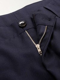 Burberry's trousers are a polished take on classic workwear styles. Cut for a straight-leg fit, they're tailored from navy wool and have a relaxed, panelled profile that will work well with an unstructured blazer. Size & Fit - Fits true to size. Take your normal size - Relaxed-straight leg, mid-rise style - Adjustable tabs at the waist - Lightweight, non-stretchy fabric - Model is shown wearing an IT 46 - Model measures: waist size 30, height 6'1"/ 185cm Details & Care - Navy wool - Button and zip fastenings - 100% wool; buttons: 100% horn (Buffalo) - Dry clean