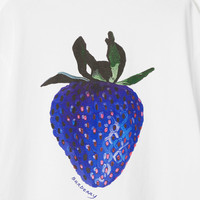 PRODUCT DETAILS A crew-neck T-shirt in cotton jersey, printed with a logo and hand-painted strawberry artwork. The style is cut to a regular fit. - Length: 74cm/29.1in (size UK M) - Model’s height: 188cm/6ft 2in. Model wears size UK L Regular fit. Fits true to size, take your normal size. 100% cotton* Trim: 97% cotton, 3% elastane Machine wash Made in Portugal *Containing organic cotton Item 80891001