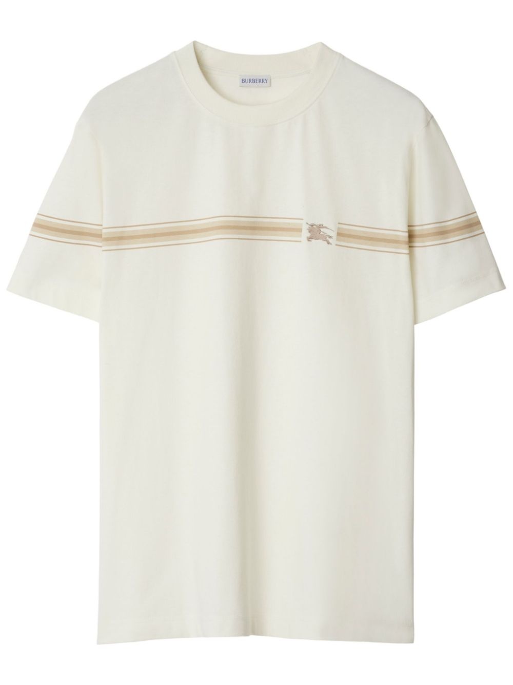 striped cotton T-shirt Highlights - Cream white - Cotton - Lightweight jersey - Stripe print - Crew neck - Short sleeves - Signature equestrian knight motif - Straight hem Imported Composition Cotton 100%