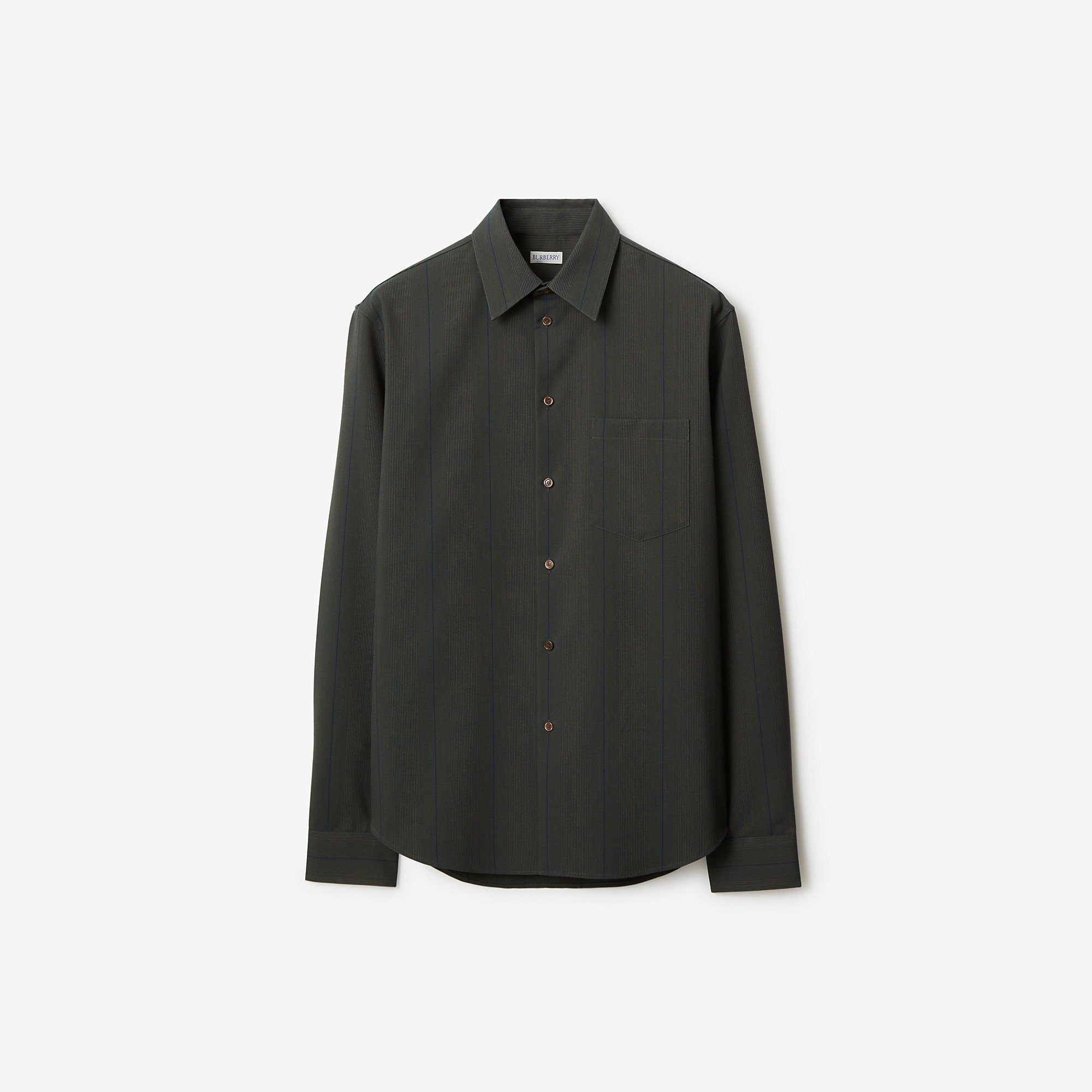 PRODUCT DETAILS A long-sleeved shirt in wool woven with stripes. The design is tailored in Italy to an oversized fit. - Length: 82cm/32.3in (size UK M) - Model’s height: 187cm/6ft 2in. Model wears size UK M Oversized fit: our loosest cut, designed for exaggerated proportions. We recommend sizing down. 100% wool Trim: 100% cotton Buttons: mother-of-pearl Specialist dry clean Made in Italy Item 80874581
