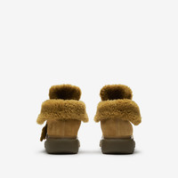 PRODUCT DETAILS Foldover sides Upper: 90% calf suede, 10% shearling* Trim: 100% shearling* Lining: 85% shearling*, 15% cotton Sole: 100% rubber Made in Italy *100% real farmed dyed sheep shearling, ovis aries, country of origin: Spain Item 80772341