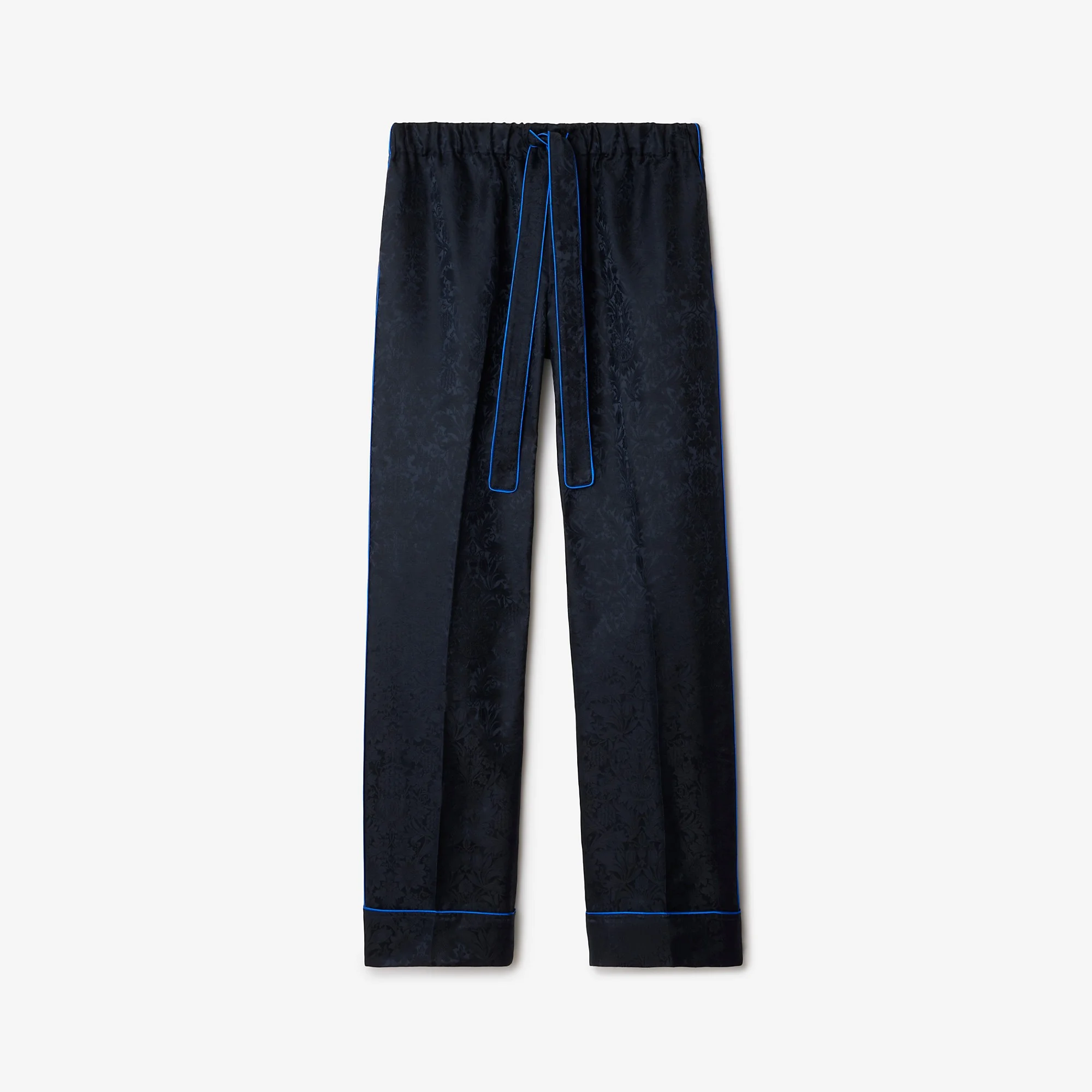 Product Details Pyjama trousers made in Italy from silk, jacquard-woven with William Morris’ ‘Sunflower’ artwork – a wallpaper design from 1879 (©Victoria and Albert Museum, London). Debuted on the Burberry Winter 2025 runway, the style is tailored to a regular fit and features a drawcord belt trimmed with blue piping. - Button closure - Drawcord waist - Side slip pockets, back patch pocket - Regular fit. Fits true to size, take your normal size. - Item 81164241 Size & Fit - Inside leg length: 81cm/31.9in (size UK L) - Model’s height: 185cm/6ft 1in. Model wears size UK L Fabric & Care - 100% silk - Buttons: mother-of-pearl - Specialist dry clean - Made in Italy