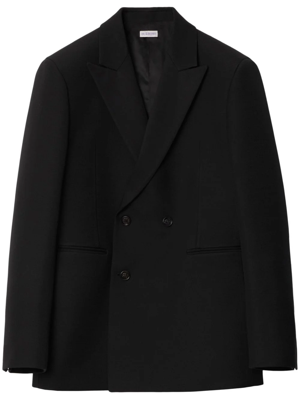 tailored double-breasted blazer Highlights - Black - Wool blend - Full lining - Peak lapels - Padded shoulders - Long sleeves - Double-breasted button fastening - Two front jetted pockets - Straight hem Made in Italy Composition Outer: Acrylic 63%, Wool 21%, Polyester 16% Lining: Viscose 100% Washing instructions Dry Clean Only