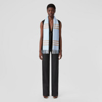 PRODUCT DETAILS The Classic Cashmere Scarf in check is made at a 200-year-old mill in the Scottish countryside. Using 30 different steps, the scarf is woven on traditional looms. The fabric is washed in local spring water and carefully brushed with teasels for a super-soft finish. 168 x 30cm/66.1 x 11.8in 100% cashmere Rectangular Fringing at both ends Specialist dry clean Made in Scotland We are committed to supporting our supply chain partners to source low-carbon energy, which significantly reduces the carbon footprint of our products. 80184881