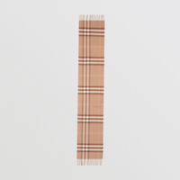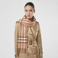 PRODUCT DETAILS The Classic Cashmere Scarf in check is made at a 200-year-old mill in the Scottish countryside. Using 30 different steps, the scarf is woven on traditional looms. The fabric is washed in local spring water and carefully brushed with teasels for a super-soft finish. 168 x 30cm/66.1 x 11.8in 100% cashmere Rectangular Fringing at both ends Specialist dry clean Made in Scotland We are committed to supporting our supply chain partners to source low-carbon energy, which significantly reduces the carbon footprint of our products. 80163991