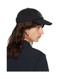 Cotton-blend twill cap in black. · Embroidered eyelets at crown · Logo graphic embroidered at face · Curved brim · Pin-buckle fastening · Cotton poplin lining Supplier color: Coal Body: 66% polyester, 34% cotton. Lining: 100% cotton. Made in Italy 242376M139013