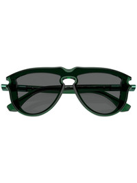 transparent-design pilot-frame sunglasses Highlights - Emerald green - Acetate - Pilot frame - Tinted lenses - Uv-protective lenses - Transparent design - Raised bridge - Straight arms - Curved tips - These glasses come with a protective case. Made in United States Composition Acetate 100% SIZE & FIT Measurement Arm Length 5.7 in(14.5 cm) Lens Diameter 1.41 in(3.6 cm)