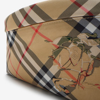Product Details A belt bag woven in the Burberry Check with a matching lining and Equestrian Knight Design applique. The design features B-cut zip pulls and can be styled as a crossbody using the adjustable strap. Part of Burberry Classics, wardrobe foundations with a unique Burberry slant. - Adjustable webbing strap - Two-way zip closure - Exterior zip pocket - Brushed metal hardware - Appliqued Equestrian Knight Design at front - Burberry Check lining - Comes with a dust bag - Item 80917801 Size & Fit - 33 x 11 x 18cm/13 x 4.3 x 7.1in. Min. strap length: 75cm/29.5in. Max. strap length: 115cm/45.3in Fabric & Care - Outer: 92% polyester, 8% polyurethane - Lining: 92% polyester, 8% polyurethane - Imported