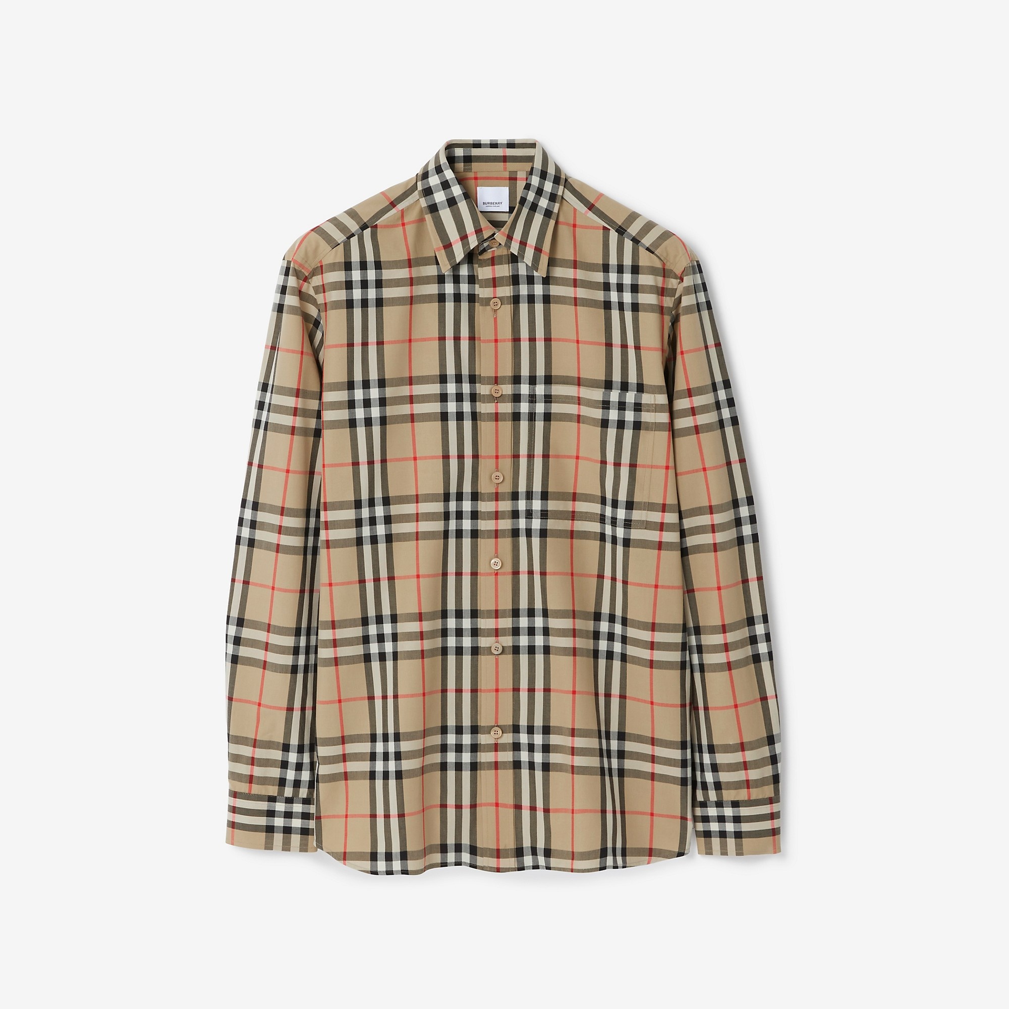 PRODUCT DETAILS Burberry Check - Length: 79.5cm/31.3in (size UK M) - Model’s height: 189cm/6ft 2in. Model wears size UK L Regular fit 100% cotton Buttons: mother-of-pearl Machine wash Imported Item 80208631