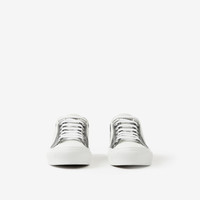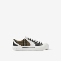 PRODUCT DETAILS Low-top sneakers made in Italy from Vintage Check cotton overlaid with mesh and panelled with topstitched leather. The heel is accented with our logo. Upper: 77% calf leather, 23% cotton Trims: 70% polyester, 30% brass Lining: 94% calf leather, 3% polyamide, 3% polyurethane Sole: 100% rubber Lace-up closure Raised Burberry lettering at heel Made in Italy Item 80654481