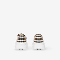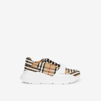 PRODUCT DETAILS A runway-inspired sneaker in our archival Vintage check, set on an accentuated tread and tagged with our refreshed logo. Upper: 99% cotton, 1% calf leather Lining: 54% cotton, 37% sheep leather, 9% goat suede Sole: 100% rubber Lace-up and Velcro tab closure Raised Burberry lettering at front Made in Italy We are committed to supporting our supply chain partners to source low-carbon energy, which significantly reduces the carbon footprint of our products. 80468261