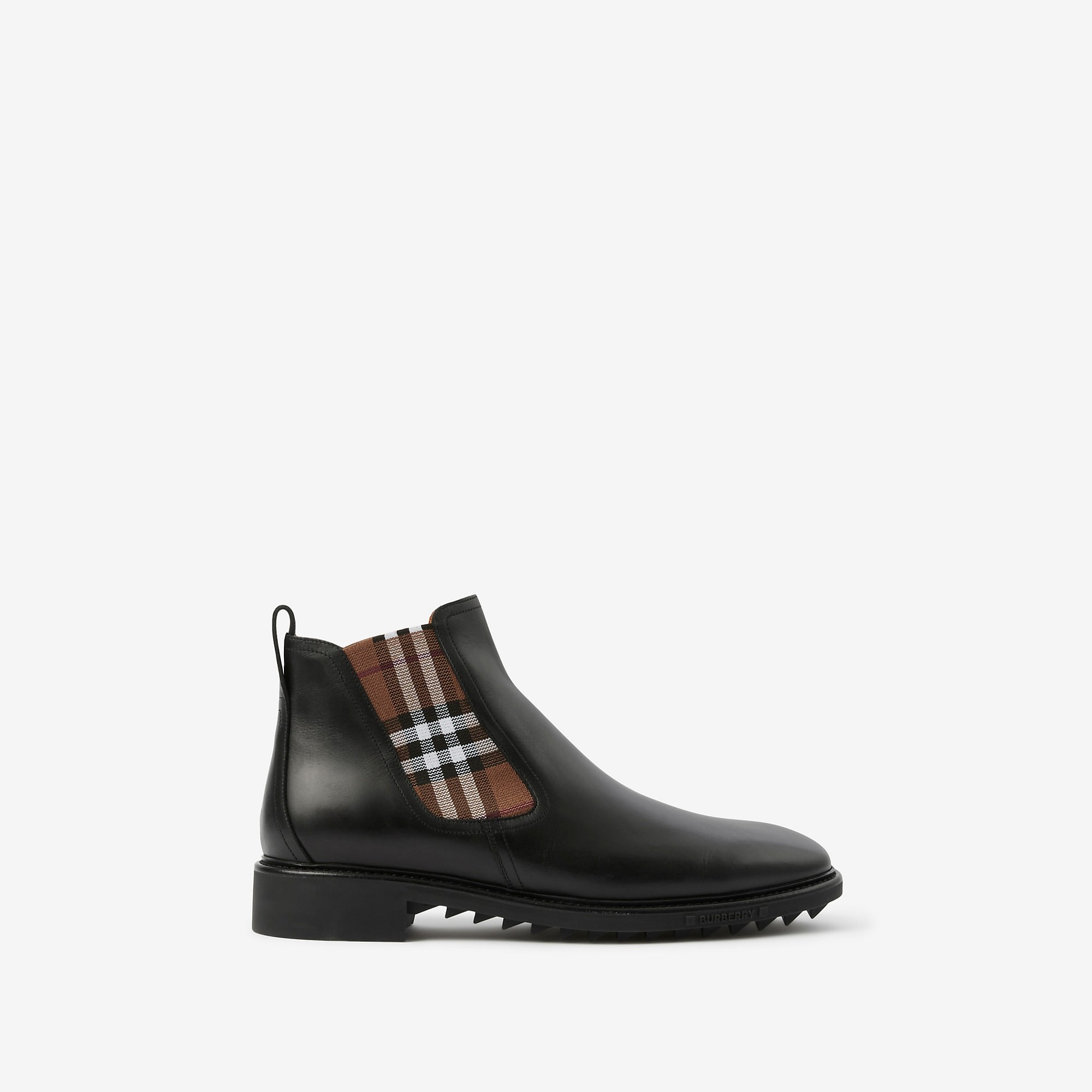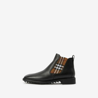 PRODUCT DETAILS Italian-made leather Chelsea boots reworked with archival Vintage check side panels and a serrated tread. Upper: 85% calf leather, 12% polyester, 3% rubber Lining: 85% calf leather, 12% polyester, 3% rubber Sole: 50% polyurethane, 50% thermoplastic polyurethane Slip-on style with pull tabs Almond-shaped toe Made in Italy Item 80452441