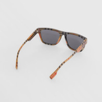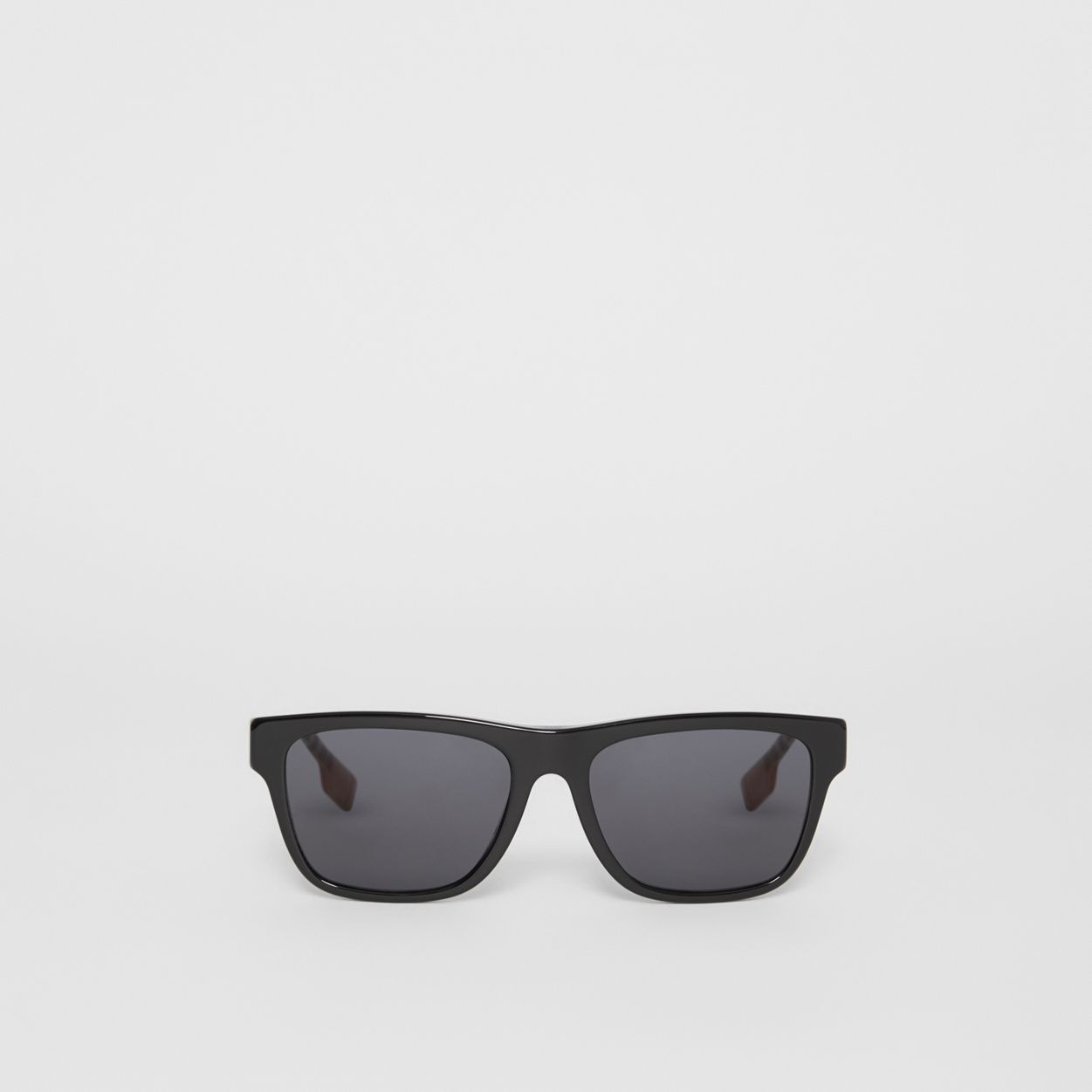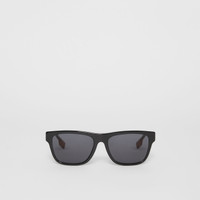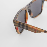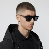 PRODUCT DETAILS Part of the Alternative Fit Collection, the glasses feature longer curved temples, a straight front and flatter lenses, giving a more comfortable fit for Asian bone structure. A black acetate square frame accented with our archival Vintage check. Frame width: 14.5cm/5.7in Frame height: 4.7cm/1.9in Scratch-resistant grey lenses with 100% UV protection Acetate frame Made in Italy Comes with a hard leather case and cleaning cloth 40806941