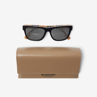 Product Details A pair of rectangular sunglasses in acetate. The inner and temples are printed with the Burberry Check. - Scratch-resistant grey lenses with 100% UV protection - Also comes in an alternative fit - Item 40806481 Size & Fit - Frame width: 14.5cm/5.7in. Frame height: 4.7cm/1.9in Fabric & Care - Frame: 100% acetate - Comes with a hard leather case and cleaning cloth - Made in Italy