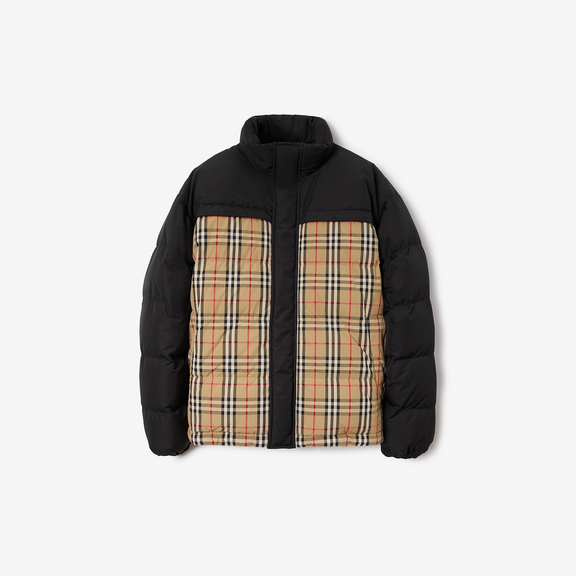 Product Details A puffer jacket in nylon, filled with goose down and feathers. The reversible design switches from Burberry Check to a solid colour appliqued with the Equestrian Knight Design. The style is cut to a relaxed fit. - Two-way zip and press-stud closure - Side press-stud pockets - Elasticated cuffs - Drawcord hem - Appliqued Equestrian Knight Design at reverse - This item will be packaged in a recycled cotton tote unless the gift packaging option is selected at checkout. - Relaxed fit: a looser cut than our regular fit. Consider taking a size down. - Machine washable - Item 80792961 Size & Fit - Length: 72cm/28.4in (size UK M) - Model’s height: 186cm/6ft 1in. Model wears size UK M Fabric & Care - Outer: 100% polyamide - Panel: 100% polyester - Inner: 100% polyester - Filling: 90% goose down, 10% goose feathers - Wadding: 100% polyester - Imported