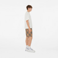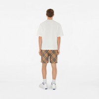 Product Details Drawcord shorts in Italian-woven twill patterned with the Burberry Check and appliqued with our Equestrian Knight Design. Cut to a relaxed fit, the style features secure zip pockets. - Zip closure - Elasticated drawcord waist - Side zip pockets, back press-stud flap pocket - Appliqued Equestrian Knight Design at back pocket - Relaxed fit: a looser cut than our regular fit. - Item 81055091 Size & Fit - Inside leg length: 16cm/6.3in (size UK M) - Model’s height: 185cm/6ft 1in. Model wears size UK M Fabric & Care - 100% polyester - Pocket lining: 100% polyamide - Specialist dry clean - Imported