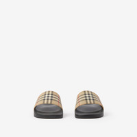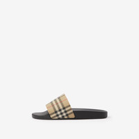 Product Details A pair of slides printed with the Burberry Check. - Contoured insole - Embossed Burberry lettering at side - Item 80569421 Fabric & Care - Upper: 100% polyurethane - Sole: 60% polyurethane, 40% thermoplastic polyurethane - Made in Italy