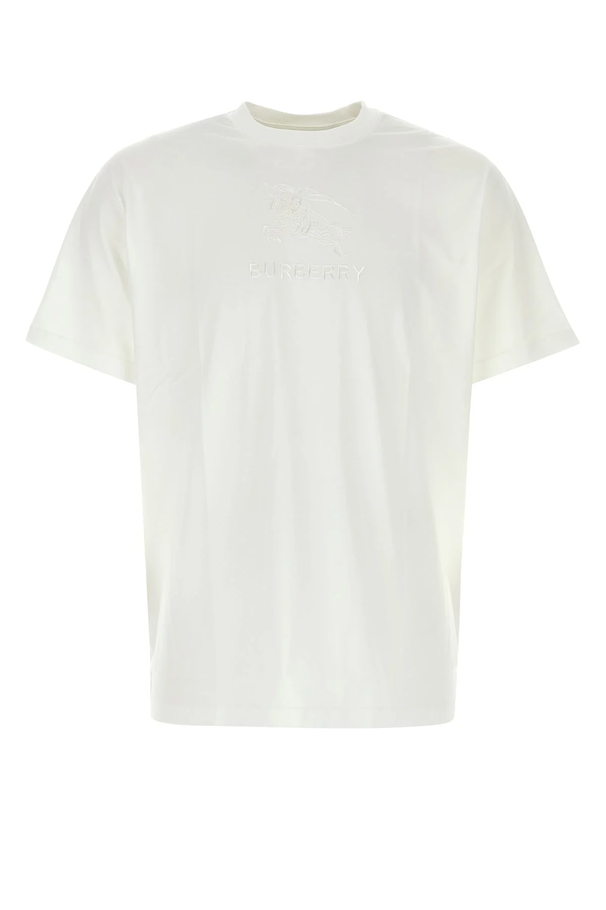 T-shirt realized in pure cotton characterized by Equestrian Knight embroidery on the entire surface. - Ribbed crew-neck - Loose fit DETAILS White cotton t-shirt Exterior: 100% Cotton Made in Sample size: M