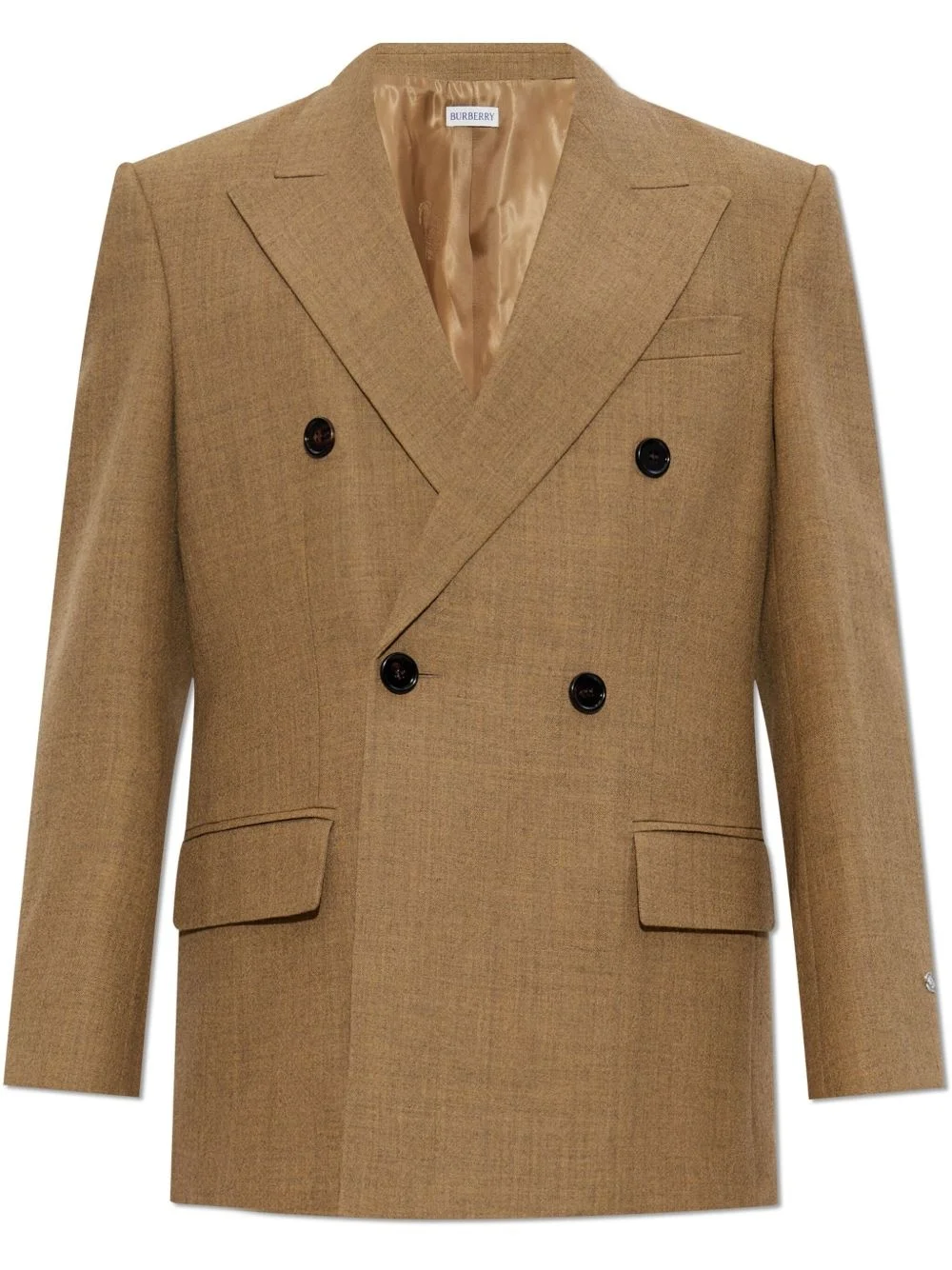 wool blazer Highlights - Camel brown - Double-breasted button fastening - Jetted chest pocket - Two front flap pockets - Buttoned cuffs Made in Italy Composition Outer: Wool 100% Lining: Cupro 100% Washing instructions Read Manufacturer Guidelines