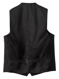 wool-silk blend waistcoat Highlights - Black - Wool-silk blend - Crepe texture - V-neck - Front button fastening - Two front welt pockets - Decorative stitching - Adjustable buckle strap at rear - Full lining Made in Italy Composition Outer: Wool 60%, Silk 40% Lining: Cupro 100%