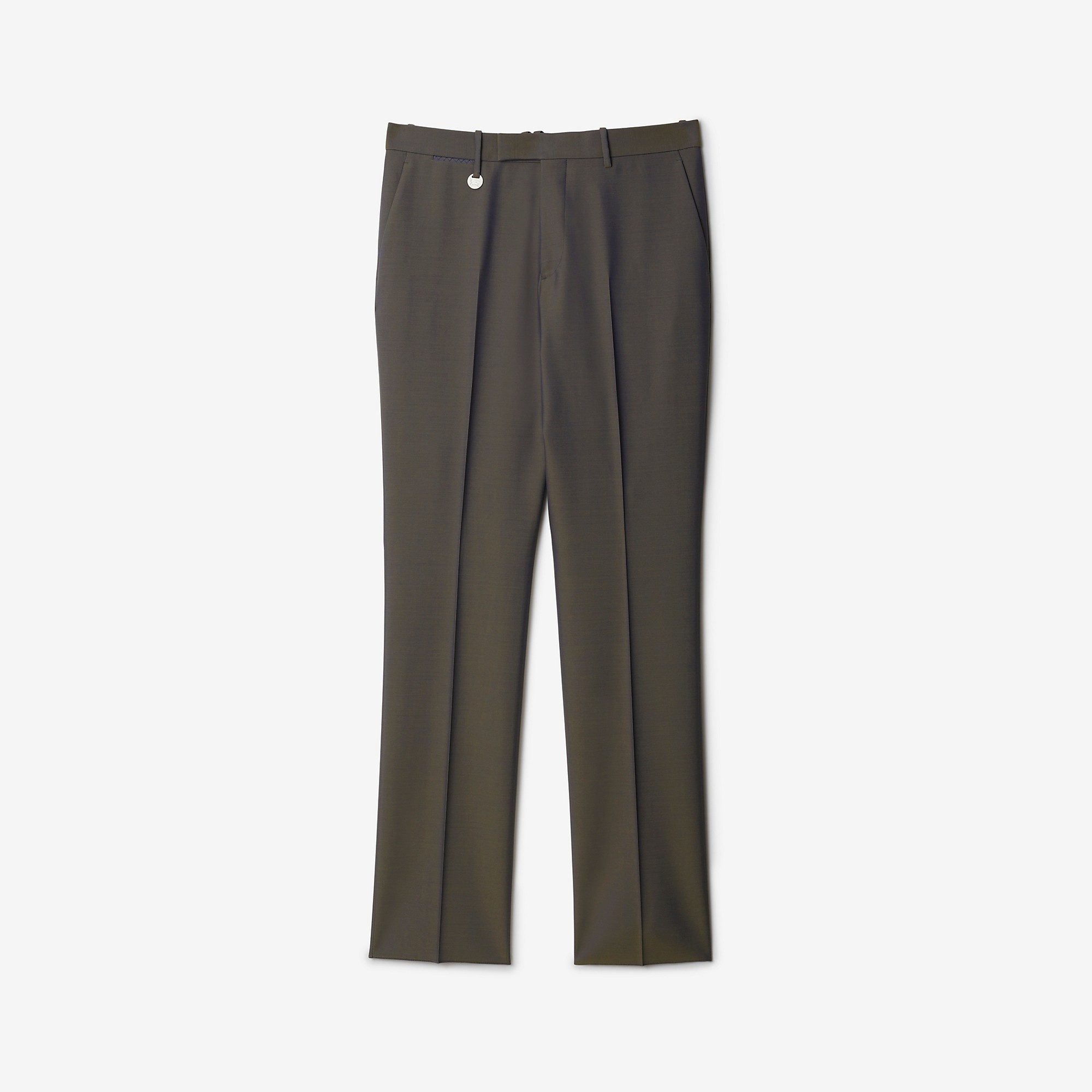 PRODUCT DETAILS Trousers made in Italy from changeant wool, an archive-inspired fabric woven with contrasting yarns for an iridescent effect. Tailored to a slim fit, the style is detailed with an Equestrian Knight Design tag at the belt loop. - Inside leg length: 93cm/36.6in (size IT 50) - Model’s height: 189cm/6ft 2in. Model wears size IT 50 Slim fit: this style is cut to a fitted silhouette. Fits true to size, take your normal size. Outer: 100% wool Lining: 100% cupro Buttons: buffalo horn Specialist dry clean Made in Italy Item 80896781