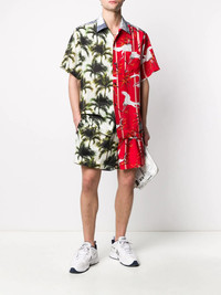 palm tree print shirt Red silk and cotton blend palm tree print shirt from Buscemi featuring an all-over print, a pointed collar, a front button fastening, a chest pocket, short sleeves and a straight hem. Imported Composition Outer: Silk 65%, Viscose 56%, Cupro 38% Lining: Cotton 100% SIZE & FIT Model measurements Height 6 ft 2 in(1.87 m) Bust/Chest 37.79 in(96 cm) Hips 37.79 in(96 cm) Waist 30.31 in(77 cm) FittingInformation This piece fits true to size. We recommend you get your regular size Cut for a loose fit Made with a lightweight non-stretch fabric Washing instructions Dry Clean Only