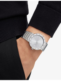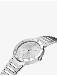 PRODUCT DETAILS - Bvlgari stainless-steel automatic watch - 100% stainless steel; bracelet 100% stainless steel - Style number: BB41C6SSHMSD - Folding-buckle-clasp fastening - Synthetic-sapphire glass, round sunray dial, 26 jewels, mechanical movement, automatic winding and date, BVL 191 Solotempo calibre decorated with cotes de Geneve, chamfering and snailing, 42hr power reserve, frequency 28,800 vph (4 Hz), bezel engraved with double logo, crown set with ceramic insert - Case diameter: 41mm - Wipe with a clean, dry cloth - Water resistance: 5 bar / 5 atm / 50m / 165ft - Made in Switzerland - Two-year manufacturer's warranty - Bvlgari prides itself on providing excellent customer service. This includes contacting customers to offer after-sales care and share details about its brand and products. As such, when you order a Bvlgari product from us, your details will be passed onto Bvlgari so that it can provide these services to you. Ref: R04208017