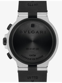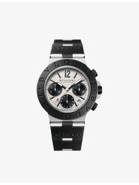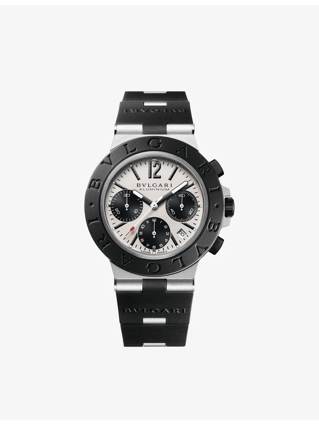 PRODUCT DETAILS - Bvlgari BB41SBATRSLNCH2 BVLGARI BVLGARI aluminium automatic watch - 100% aluminium - Style number: BB41SBATRSLNCH2 - Pin-buckle fastening - Mechanical manufacture movement, automatic winding, chronograph, aluminum and titanium case, black rubber bezel with BVLGARI BVLGARI engraving, grey dial, date opening and black rubber bracelet - Dial: round - Glass: synthetic sapphire - Case diameter: 41mm - Water resistance: more than 10 bar / 10 atm / 100m - Made in Switzerland - Please refer to the brand’s care instructions - 5-year warranty - Bvlgari prides itself on providing excellent customer service. This includes contacting customers to offer after-sales care and share details about its brand and products. As such, when you order a Bvlgari product from us, your details will be passed onto Bvlgari so that it can provide these services to you Ref: R04319485