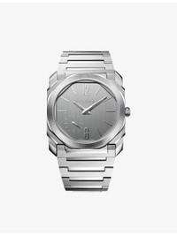 PRODUCT DETAILS - Bvlgari stainless-steel automatic watch - 100% stainless steel - Style number: BGO40C14PSSXTAUTO - Clasp fastening - Mechanical movement, automatic winding, platinum micro-rotor, hours, minutes and small seconds, extra-thin satin-polished stainless steel case, transparent caseback, polished stainless steel screw-down crown set with ceramic inlay, silvered brushed dial, brushed stainless steel bracelet with polished parts - Case diameter: 40mm - Wipe with a clean, dry cloth - Water resistance: 10 bar / 10 atm / 100m / 330ft - Made in Switzerland - Two-year manufacturer's warranty - Bvlgari prides itself on providing excellent customer service. This includes contacting customers to offer after-sales care and share details about its brand and products. As such, when you order a Bvlgari product from us, your details will be passed onto Bvlgari so that it can provide these services to you. - To learn more about this product or for expert styling services, get in touch with our Personal Shopping team Ref: R04208023