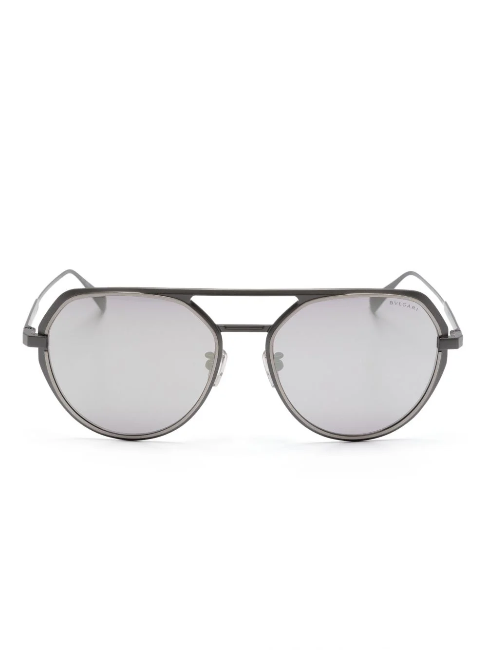 BV40019U navigator-frame sunglasses Highlights - Silver-tone - Titanium - Matte finish - Navigator frame - Grey tinted lenses - Uv-protective lenses - Logo-engraved arm - Double bridge - Nose pads - Straight arms - Curved tips Made in Italy Composition Titanium 100% SIZE & FIT Measurement Arm Length 5.7 in(14.5 cm) Bridge Width 0.66 in(1.7 cm) Lens Diameter 2.2 in(5.6 cm) Total Width 5.7 in(14.5 cm)