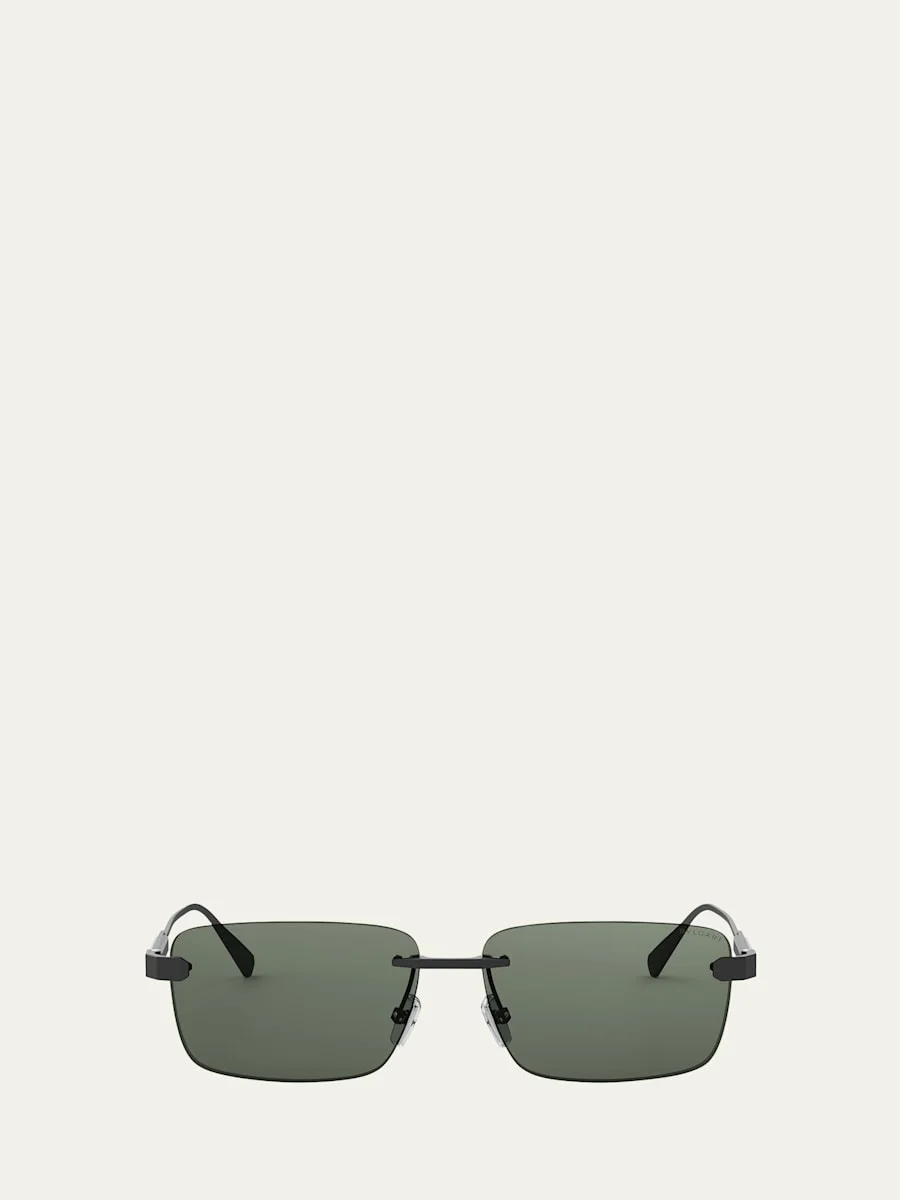 BVLGARI "Octo Finissimo" rectangle sunglasses in titanium and nylon showcasing the lasered logo on the temples Lens/bridge/temple (in mm): 60-14-145 Solid-color lenses Rimless Adjustable nose pads Thin, tapered arms Curved temple tips Titanium/nylon 100% UVA/UVB protection Made in Japan Proposition 65 warning for California residents Online Inquiries: BGS21_NDLNN| Store Inquiries: #5045576