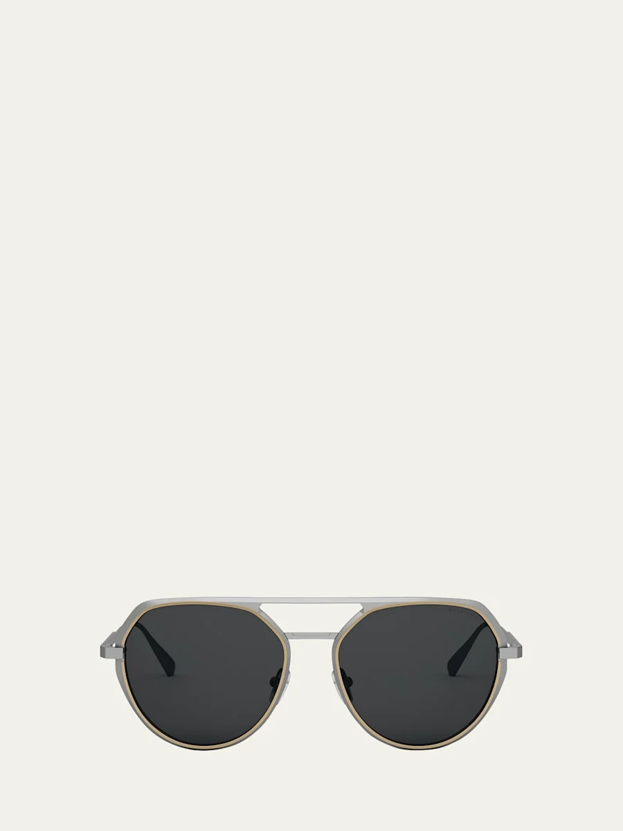 BVLGARI "Octo" sunglasses in lightweight titanium with a geometric navigator shape Solidcolor lenses Doublenose bridge Adjustable nose pads Engraved temple logo Thin arms Curved capped temple tips Titanium/nylon/polyamide 100% UVA/UVB protection Made in Italy