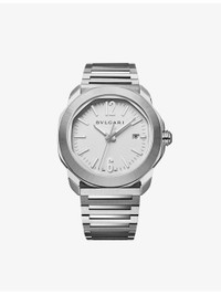 PRODUCT DETAILS - Bvlgari stainless-steel automatic watch - 100% stainless steel - Style number: RE00018 - Folding-buckle fastening - Octagonal Clous de Paris dial, satin-brushed and polished case, Haute Horlogerie motif, mechanical movement, automatic winding, synthetic-sapphire glass, BVL 191 calibre, interchangeable bracelet, 42hr power reserve, metallic indexes and hands filled with Super-LumiNova®, date opening at 3 o'clock, stainless-steel screw crown with protective system - Case diameter: 41mm - Wipe with a clean, dry cloth - Water resistance: 10 bar / 10 atm / 100m / 330ft - Made in Switzerland - Five-year manufacturer's warranty - Bvlgari prides itself on providing excellent customer service. This includes contacting customers to offer after-sales care and share details about its brand and products. As such, when you order a Bvlgari product from us, your details will be passed onto Bvlgari so that it can provide these services to you Ref: R04319486