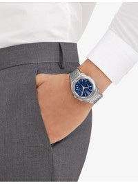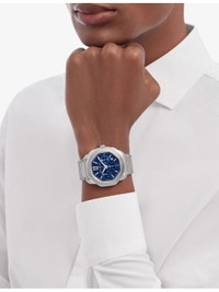 PRODUCT DETAILS - Bvlgari stainless-steel automatic watch - 100% stainless steel - Style number: RE00081 - Folding-buckle fastening - Octogonal Clous de Paris dial, satin-brushed and polished case, mechanical movement, automatic winding, synthetic-sapphire glass, BVL 399 calibre, interchangeable bracelet, 42hr power reserve, metallic indexes and hands filled with Super-LumiNova®, date opening at 4:30, small seconds at 3 o'clock, chronograph hour at 6 o'clock and chronograph minutes at 9 o'clock, stainless-steel screw crown with protective system - Case diameter: 42mm - Wipe with a clean, dry cloth - Water resistance: 10 bar / 10 atm / 100m / 330ft - Made in Switzerland - Five-year manufacturer's warranty - Bvlgari prides itself on providing excellent customer service. This includes contacting customers to offer after-sales care and share details about its brand and products. As such, when you order a Bvlgari product from us, your details will be passed onto Bvlgari so that it can provide these services to you Ref: R04319492