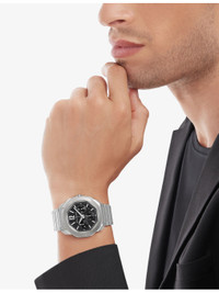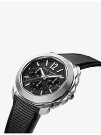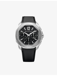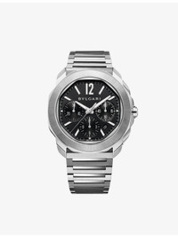 PRODUCT DETAILS - Bvlgari RE00082 Octo Roma stainless-steel automatic watch - 100% sterling silver - Style number: RE00082 - Folding-buckle fastening - Automatic winding, hours, minutes, central seconds, date, chronograph functions, BVL399 calibre and 42 hours of power reserve. Satin-brushed and polished stainless steel case, black Clous de Paris dial, metallic indexes and hands filled with Super-LumiNova, date opening at 4:30, small seconds at 3 o'clock, chronograph hour at 6 o'clock and chronograph minutes at 9 o'clock, stainless steel screw crown with protective system, and interchangeable satin-brushed and polished stainless steel bracelet - Dial: octangonal - Glass: synthetic sapphire - Case diameter: 42mm - Water resistance: more than 10 bar / 10 atm / 100m - Made in Switzerland - Please refer to the brand’s care instructions - 5-year warranty - Bvlgari prides itself on providing excellent customer service. This includes contacting customers to offer after-sales care and share details about its brand and products. As such, when you order a Bvlgari product from us, your details will be passed onto Bvlgari so that it can provide these services to you Ref: R04319480
