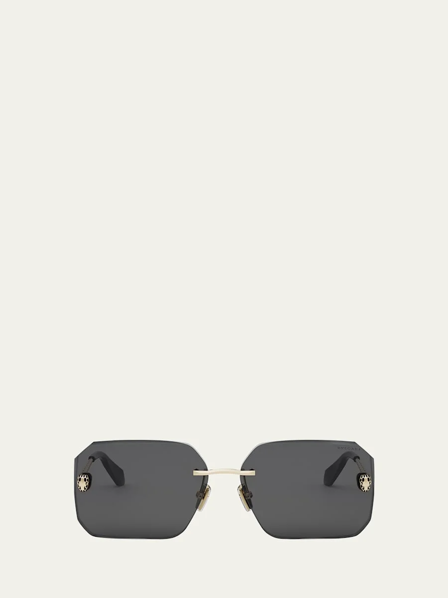 BVLGARI "Serpenti" rectangle sunglasses in metal and nylon Lens/bridge/temple (in mm): 62-14-140 Serpenti hardware on the lenses Solid-color lenses Rimless Adjustable nose pads Lasered logo on lens and temples Thin arms Curved, capped temple tips Metal/nylon 100% UVA/UVB protection Made in Italy Proposition 65 warning for California residents Online Inquiries: BGS21_NC9H2| Store Inquiries: #4836598