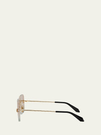 BVLGARI "Serpenti" rectangle sunglasses in metal and nylon Lens/bridge/temple (in mm): 6214140 Serpenti hardware on the lenses Gradient lenses Rimless Adjustable nose pads Lasered logo on lens and temples Thin arms Curved, capped temple tips Metal/nylon 100% UVA/UVB protection Made in Italy