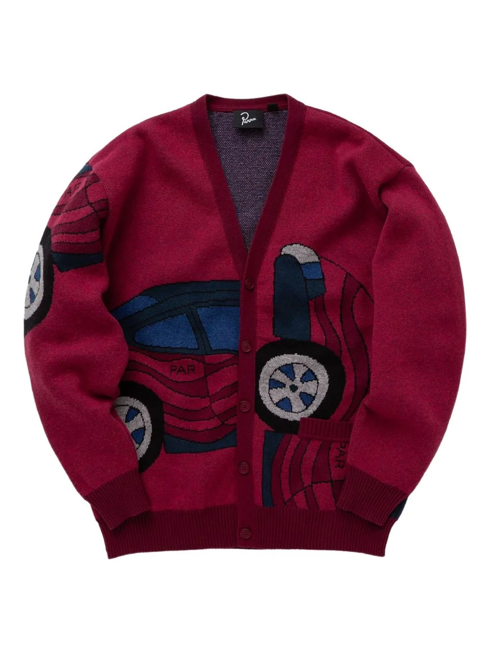 car-intarsia knitted cardigan Highlights - Dark red - Car intarsia - Ribbed cuffs and hem - Front button fastening - Front patch pockets Imported Composition Wool 80%, Polyamide 20% Washing instructions Read Manufacturer Guidelines