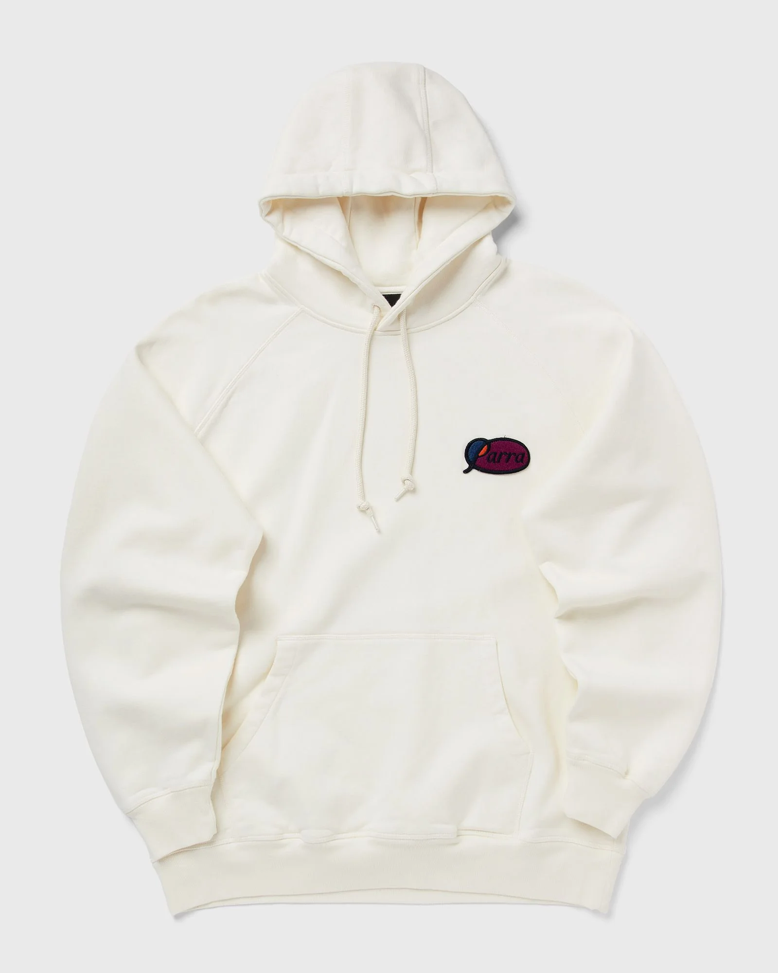 The By Parra Circled Script Logo Hooded Sweatshirt combines artistic streetwear style with high-quality craftsmanship. Made from extra heavy 100% cotton (approx. 500 g/m²), it features a soft, semi-brushed inner lining for maximum comfort. - Embroidery on the chest - Raglan sleeves - Semi-brushed interior for softness - Color-coordinated drawstrings - 3-piece hood - Fabric weight 500 grams/m2 - Ecologically prewashed Article number: 54430 Gender: men Color: Off White Material: 100% Cotton