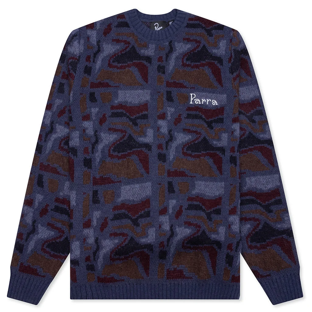 The Repeat Ftp Booster Knitted Pullover from By Parra features a unique jacquard knit construction with a Gauge 7 weave, blending a mix of cotton, acrylic, polyamide, mohair, and wool for warmth and texture. Designed with a clean, simple silhouette, it includes ribbed detailing on the collar, cuffs, and hem, delivering a structured yet relaxed fit. This pullover is true to size—select your usual size for the best fit. 54335 BLUE - 50% Cotton, 21% Acrylic, 15% Polyamide, 7% Mohair, 7% Wool - Jacquard knitted, gauge 7 - Crew neckline - Ribbed collar, cuffs and hem - Embroidered branding - Fits true to size, take your normal size - Style No: 54335